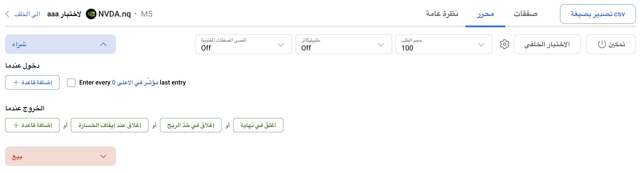 فمن السهل جدا لوضع قواعد لفتح وإغلاق الصفقات.حدد علامة التبويب محرر في الزاوية اليمنى العليا من الإطار الخاص بك وقم بتوسيع منطقة لعرض قواعد بيع أو شراء. قواعد الشراء هي اللون الأزرق، وقواعدالبيع اللون الأحمر. قواعد الخروج اللون الأخضر وتستخدم لكلا الجانبين لشراء وبيع العروض.
