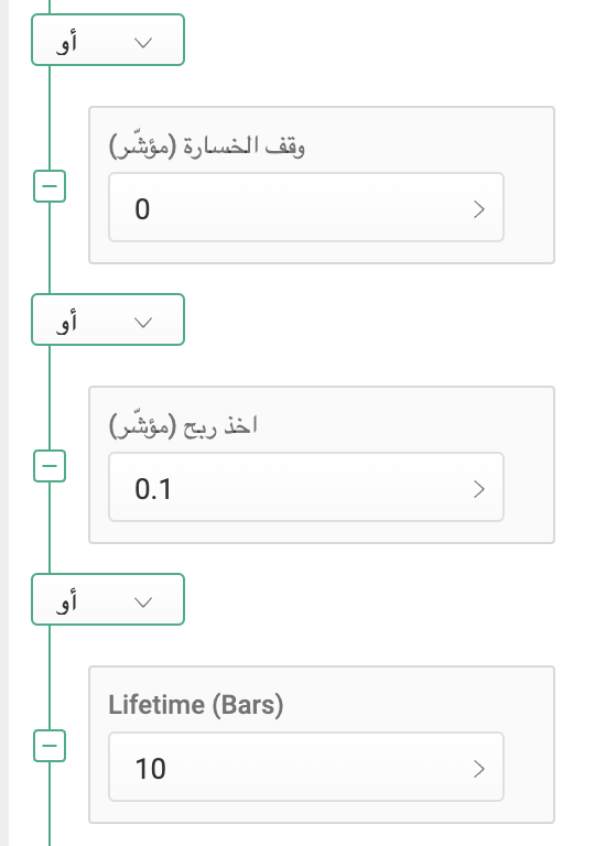 - اإغلاق إذا عمر: سيتم إغلاق استراتيجية صفقة مفتوحة بعد عدد محدد مسبقا من الحانات.