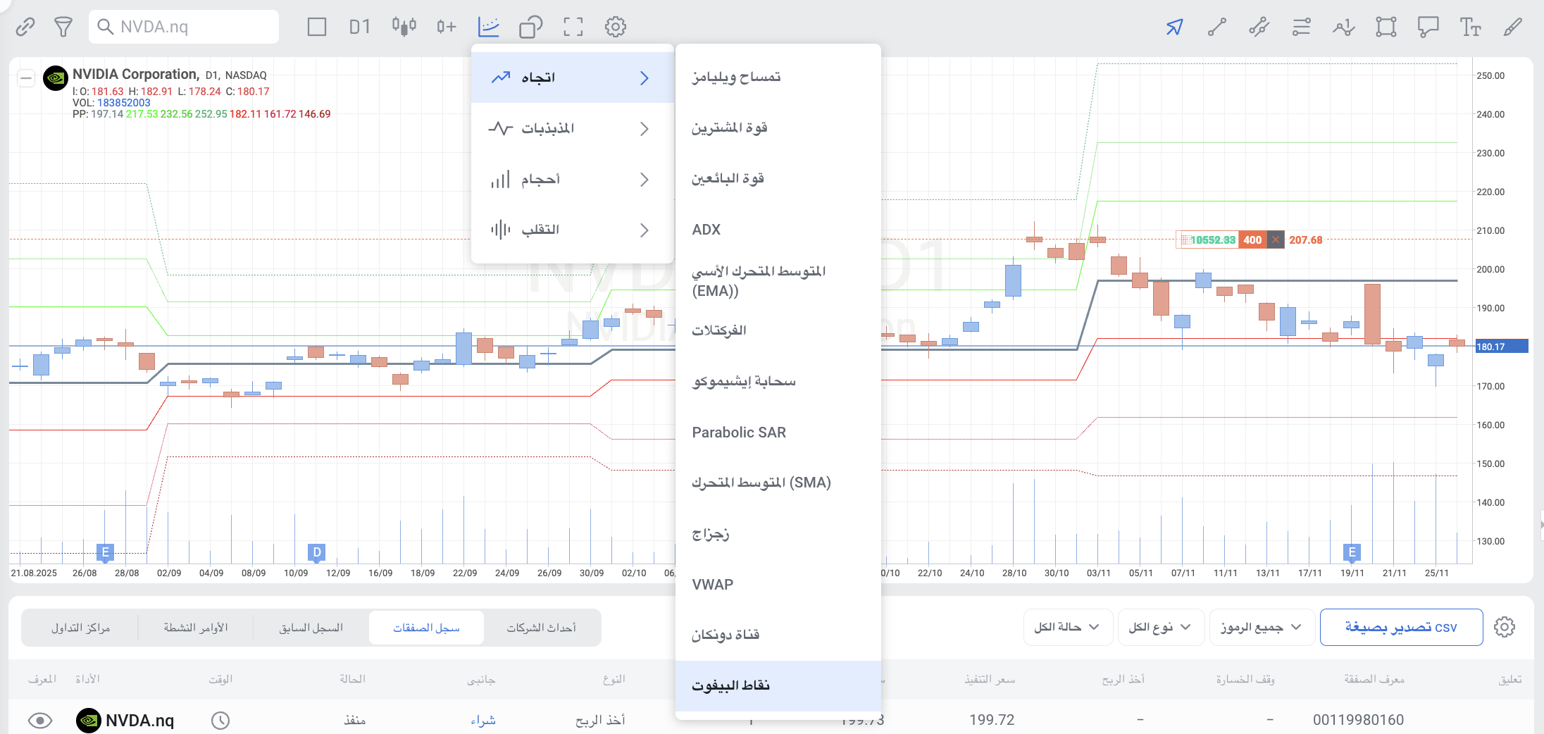 يمكن استخدام Pivot Point بشكل مستقل أو مع مؤشرات أخرى داخل RoboBuilder.