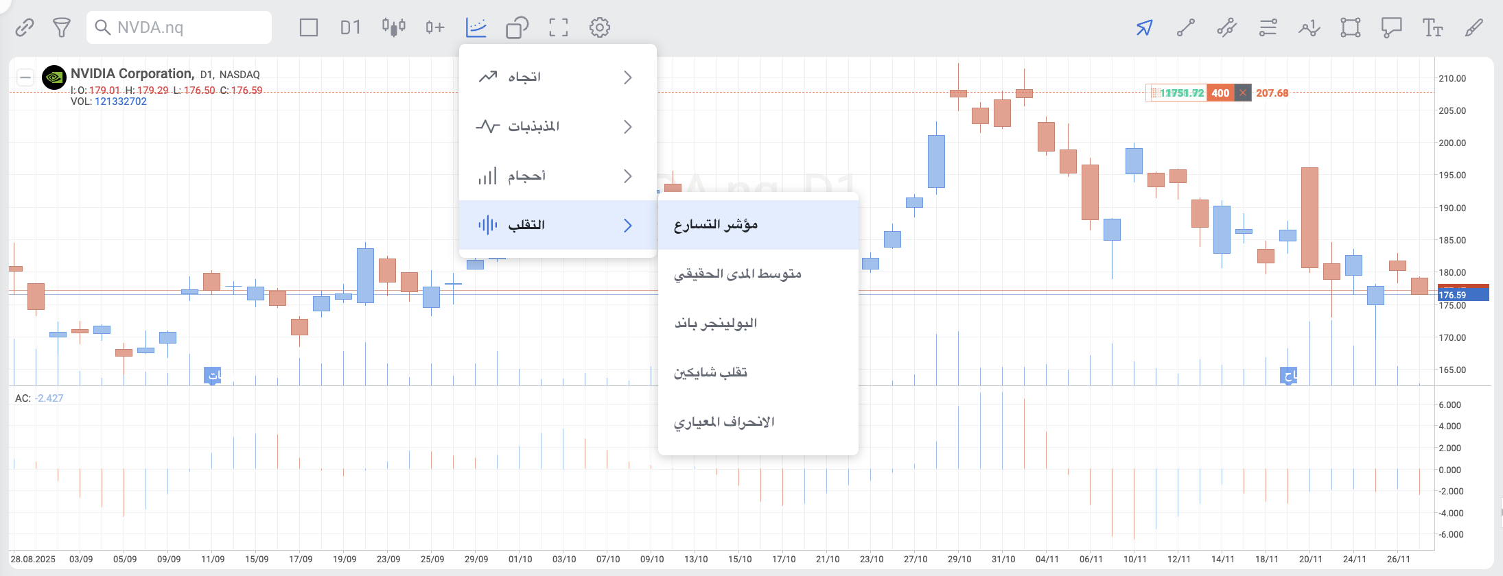 يقيس مؤشر Acceleration/Deceleration (AC) تسارع وتباطؤ القوة الدافعة الحالية من خلال تقييم التغيرات في تسارع الزخم. وتتغير حركة هذا المؤشر دائمًا قبل حركة السعر، مما يعني أن مراقبة زخم المؤشر بدلاً من مراقبة السعر فقط تمنح المتداول ميزة في توقيت الدخول. يهدف مؤشر AC إلى اكتشاف التغيرات المبكرة في الزخم — سواء كان الزخم يتسارع أو يتباطأ.