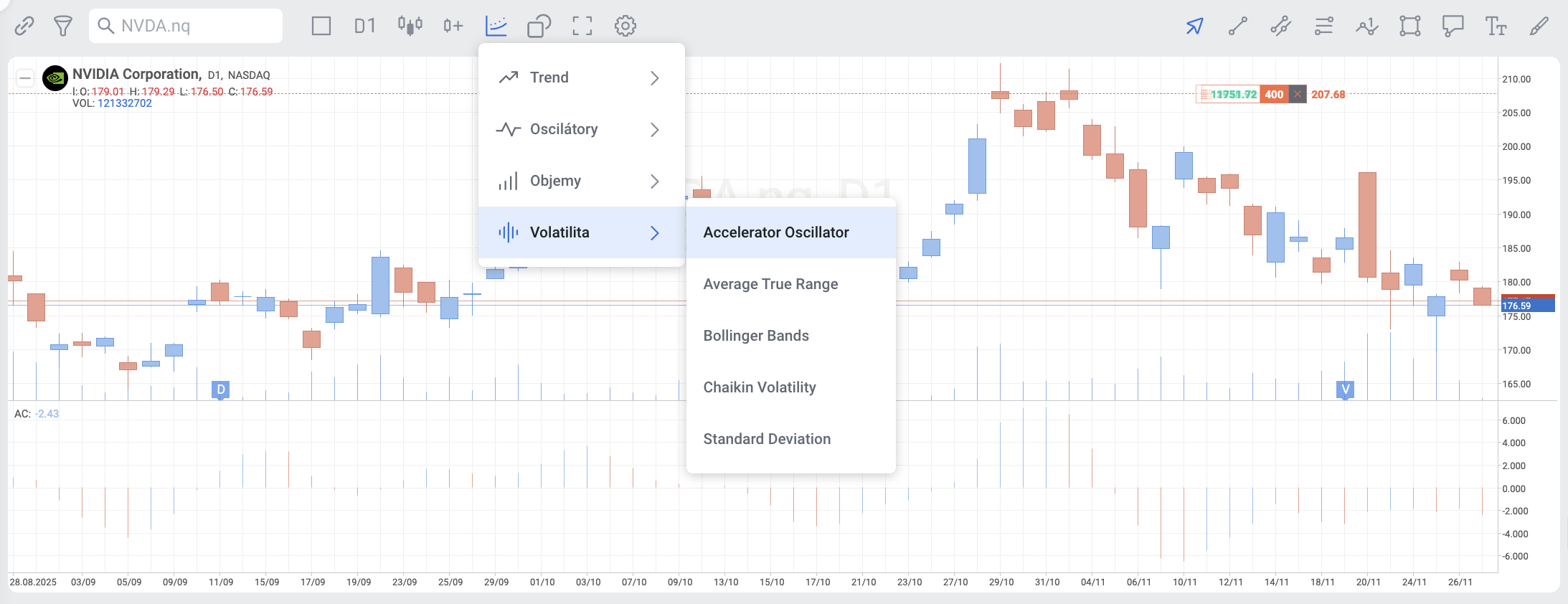 Acceleration/Deceleration Technical Indicator neboli technický indikátor zrychlení/zpomalení (AC) měří zrychlení a zpomalení aktuální hnací síly a měří zrychlenou změnu momenta. Směr tohoto indikátoru se vždy změní dříve než cena, což znamená, že pohled na momentum indikátoru namísto pouhé ceny poskytuje časovou výhodu. Indikátor akcelerace se snaží jít ještě o krok dále a odhalit včasné změny hybnosti – to znamená, kdy hybnost zrychluje nebo zpomaluje.