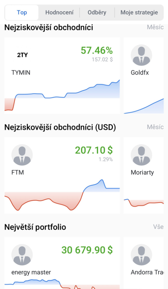 4.1 Z Nejziskovějších obchodníků, Největšího portfolia nebo Nejvíce kopírovaných obchodníků po určitou dobu (týden, dva týdny, měsíc atd.)