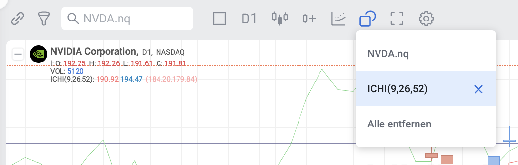 Umgekehrt wird ein Abwärtstrend verstärkt, wenn Leading Span A fällt und unter Leading Span B liegt – dies erzeugt eine rote Wolke.