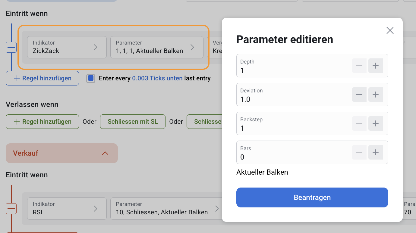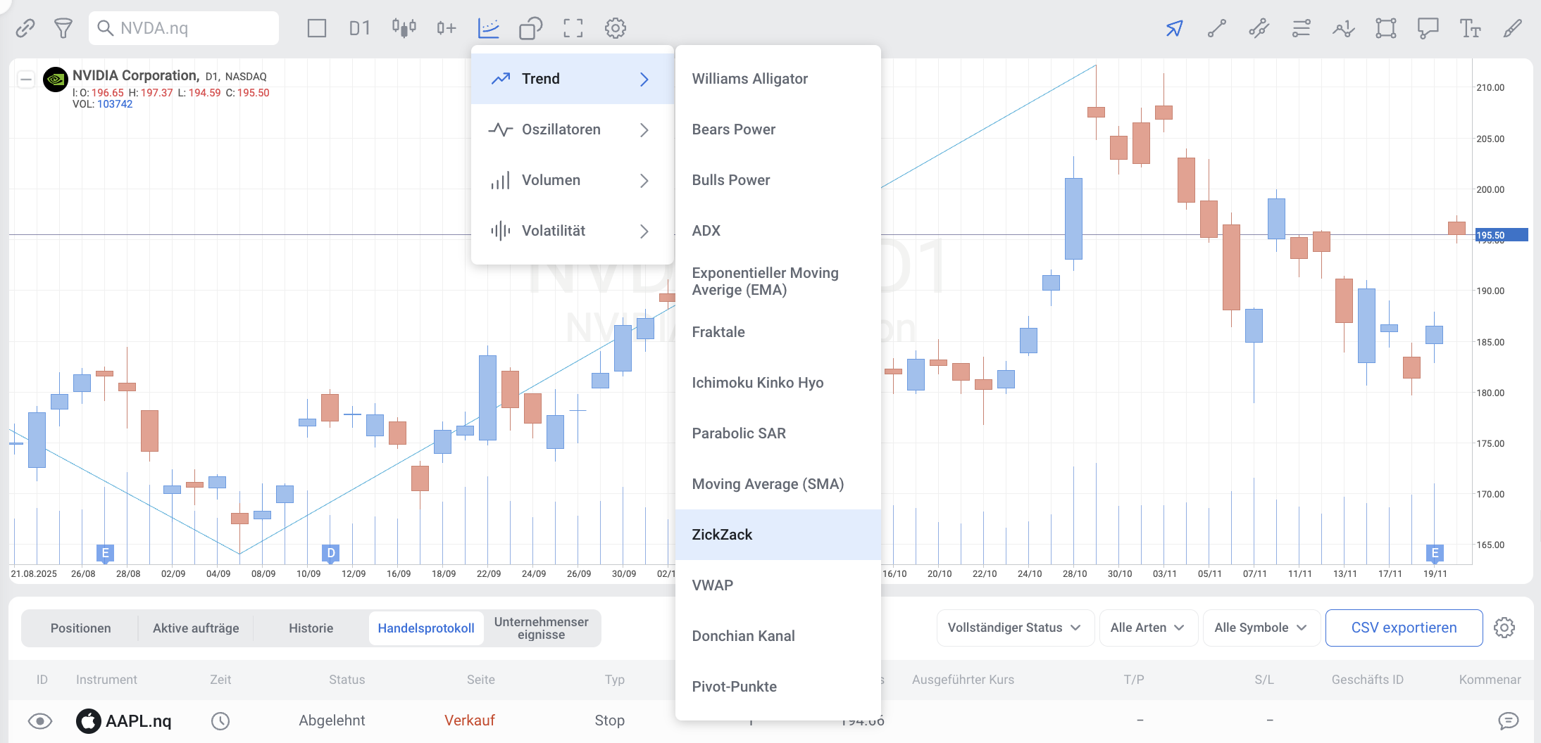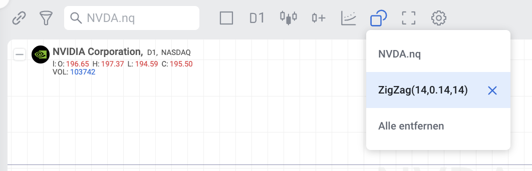 ZigZag kann sowohl eigenständig als auch in Kombination mit anderen Indikatoren im RoboBuilder verwendet werden.