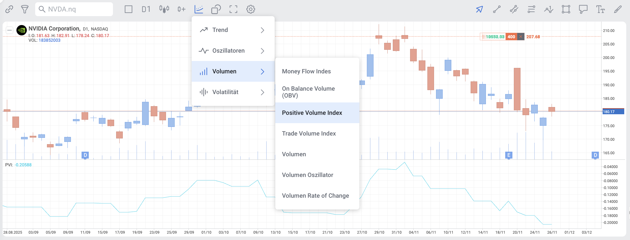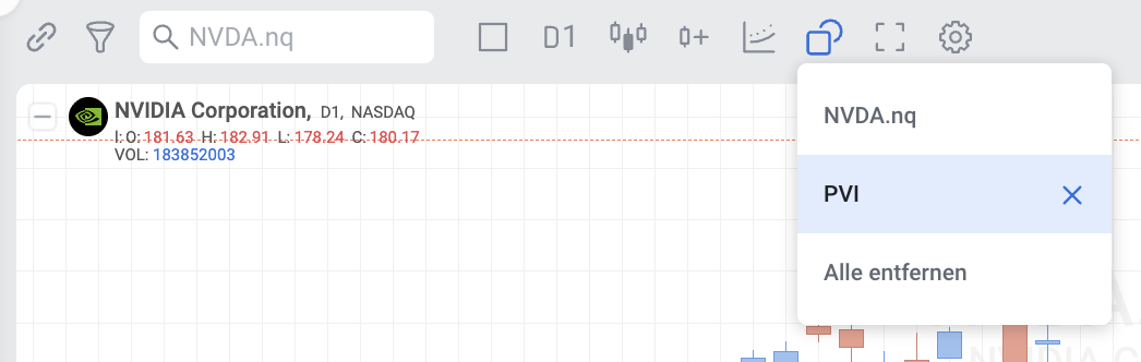 Befindet sich der PVI über dem Einjahresdurchschnitt, unterstützt dies einen Kursanstieg. Fällt der PVI unter den Einjahresdurchschnitt, unterstützt dies einen Kursrückgang.