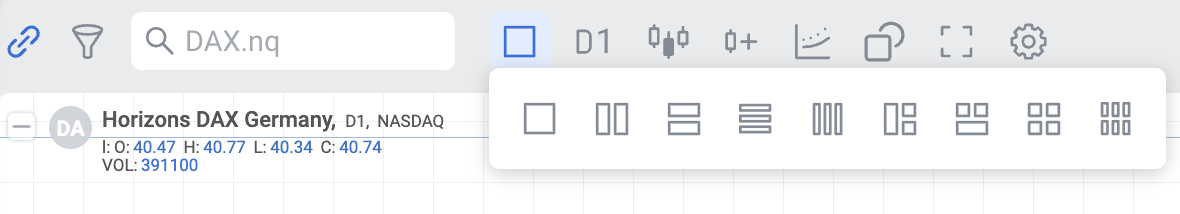 3. Wählen Sie die Anzahl und Anordnung der Chart-Fenster.
