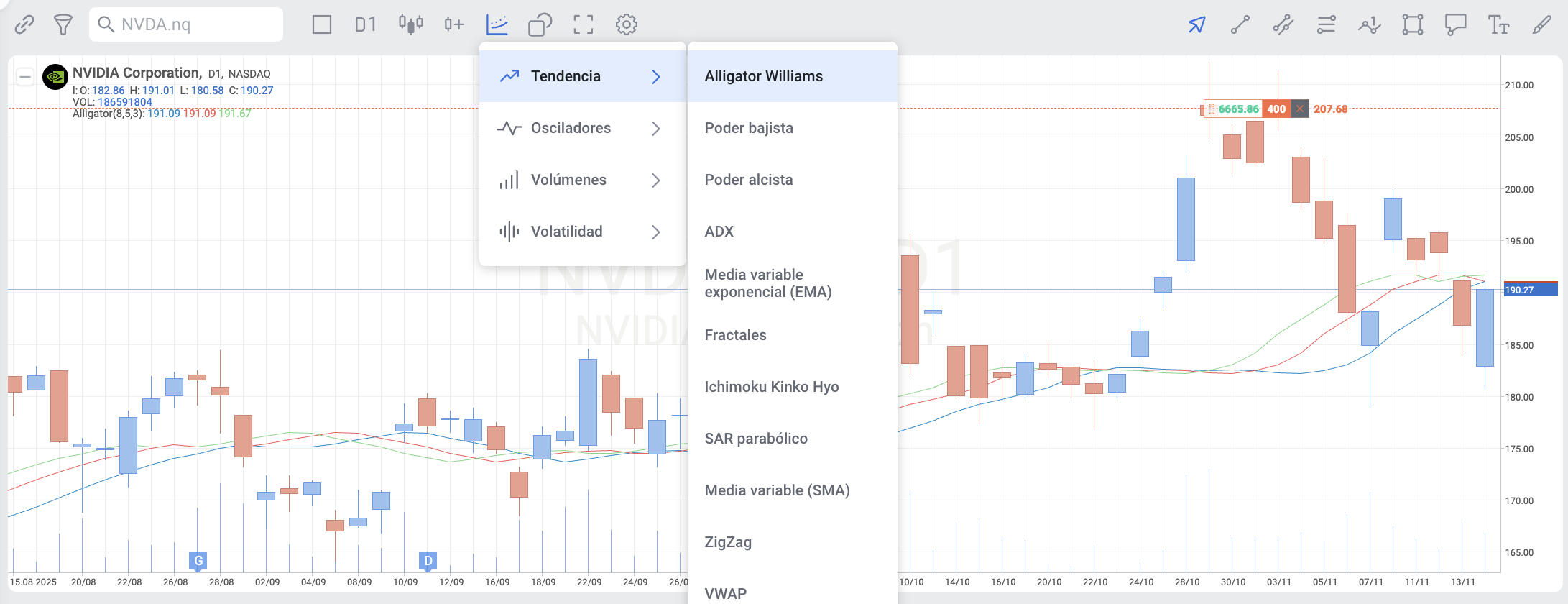 - El indicador Alligator de Williams es una herramienta de análisis técnico que utiliza promedios móviles suavizadas.