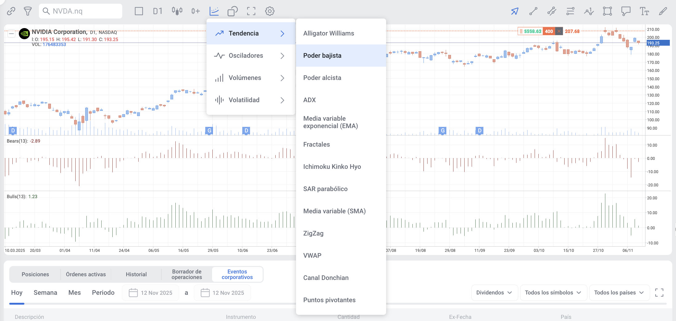 - Las divergencias, como cuando los precios alcanzan nuevos máximos pero el poder alcista no lo hace, podrían enviar una señal temprana de que se acerca un cambio de tendencia.