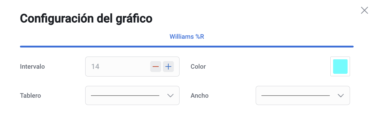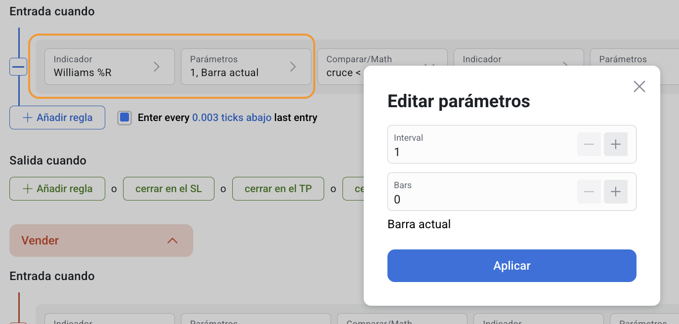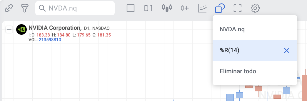 El Williams %R se puede utilizar tanto por separado como junto con otros indicadores en el Constructor de Estrategias.