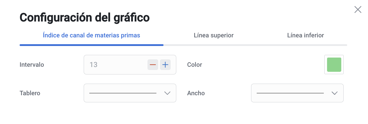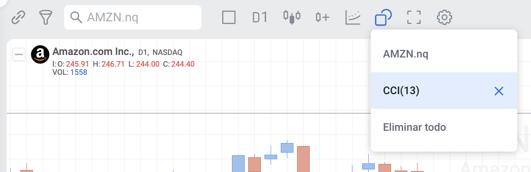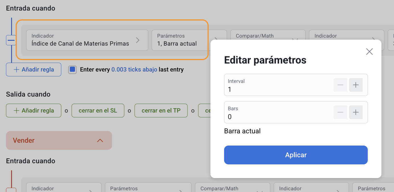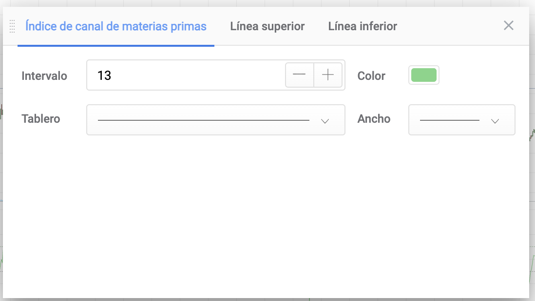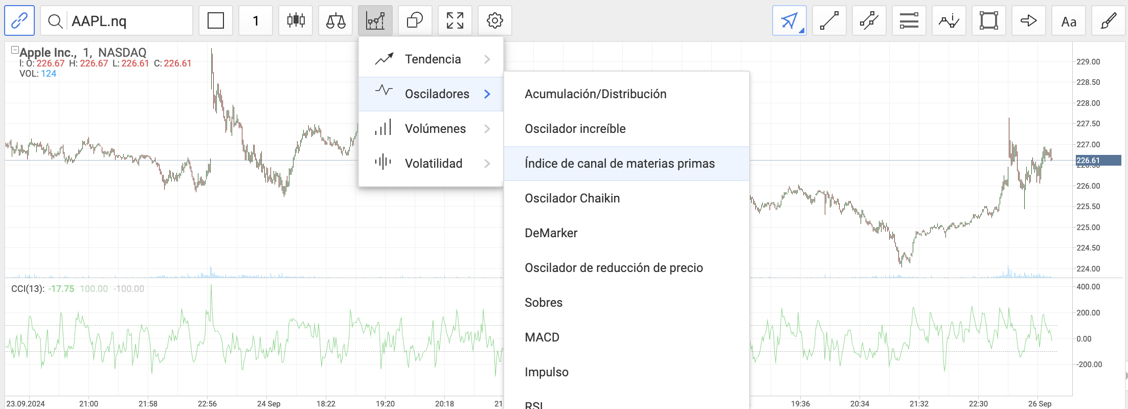El Índice de Canal de Materias Primas (CCI) se puede utilizar tanto separadamente como con otros indicadores en el Constructor de Estrategias.