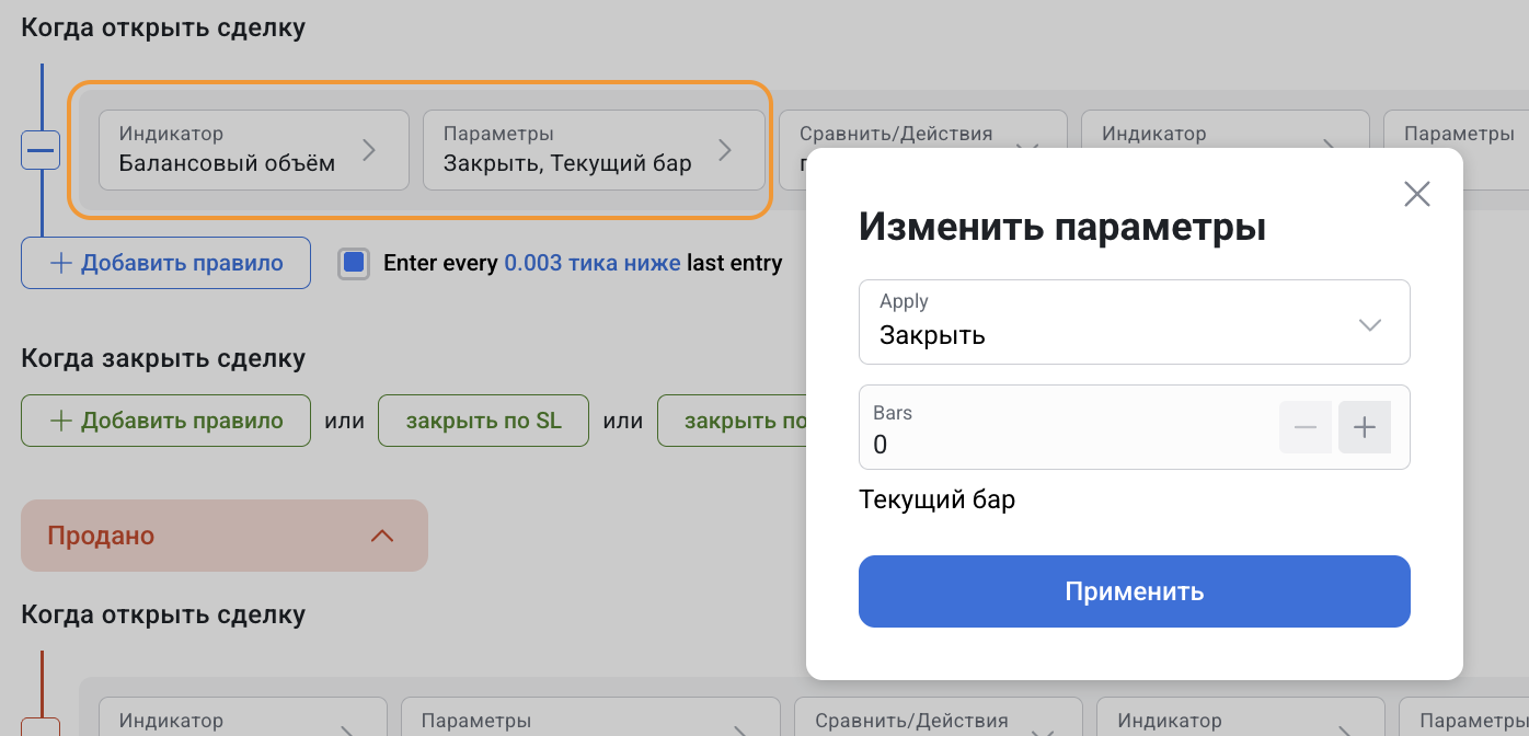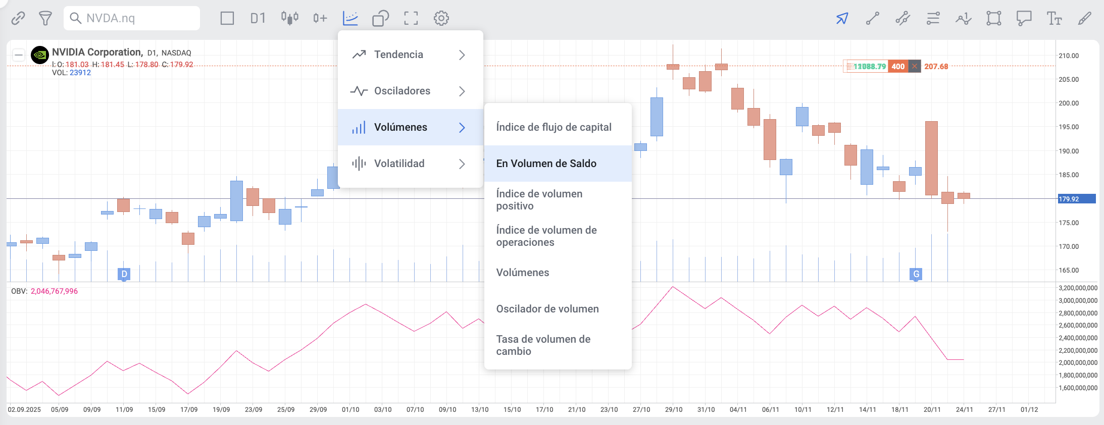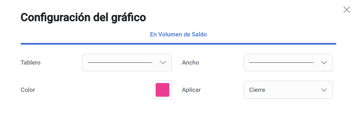 El En Volumen de Saldo se puede utilizar tanto por separado como junto con otros indicadores en el Constructor de Estrategias.