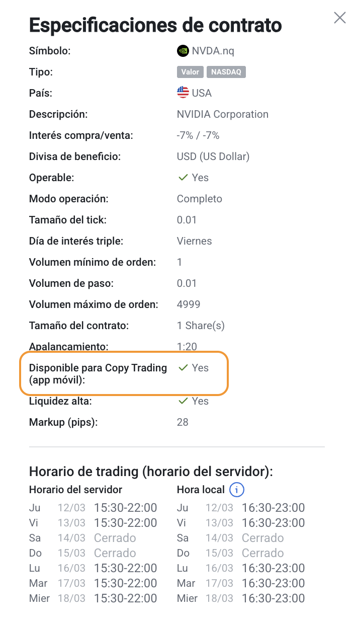 5. Escoja un instrumento disponible para la copia y comience a operar.