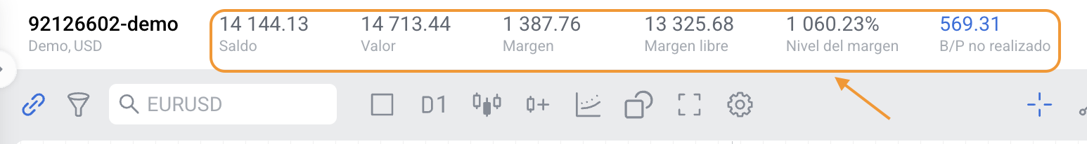 Valor es la cantidad que refleja con mayor precisión los fondos totales en la cuenta. Incluye el saldo y la suma de las ganancias y pérdidas no realizadas (B/P no realizadas) de las posiciones que aún están abiertas.