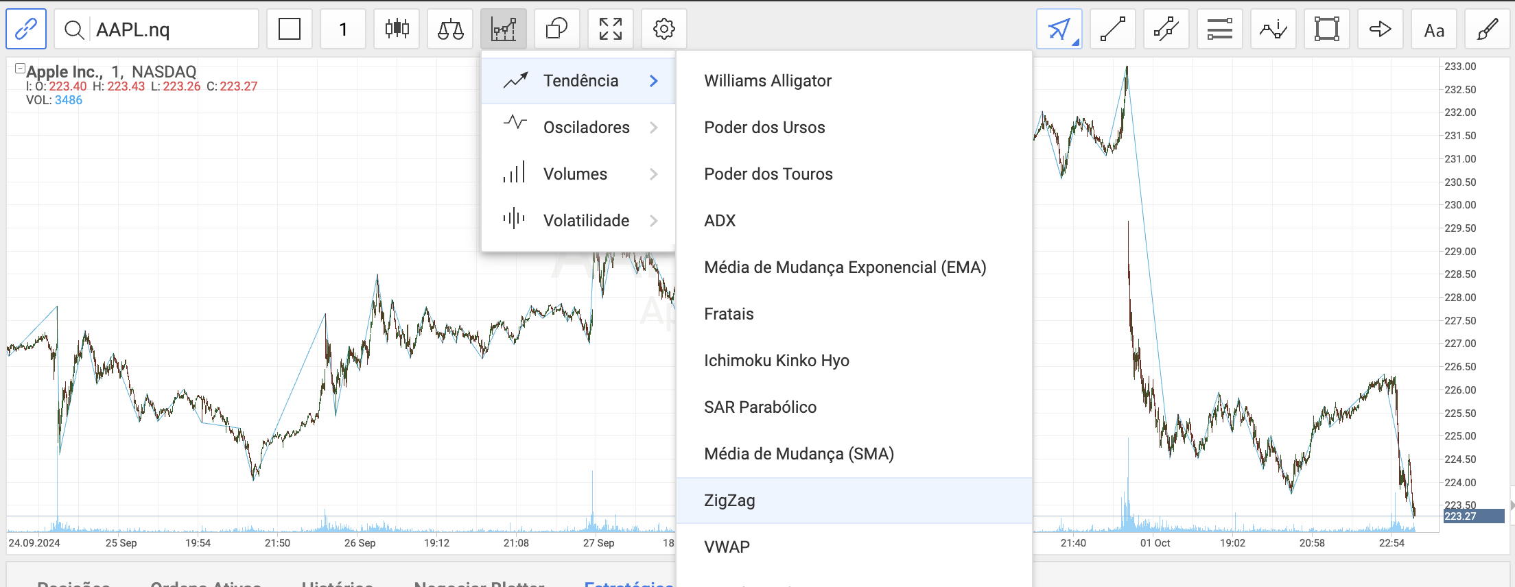 O ZigZag pode ser utilizado separadamente e em conjunto com outros indicadores no RoboBuilder.