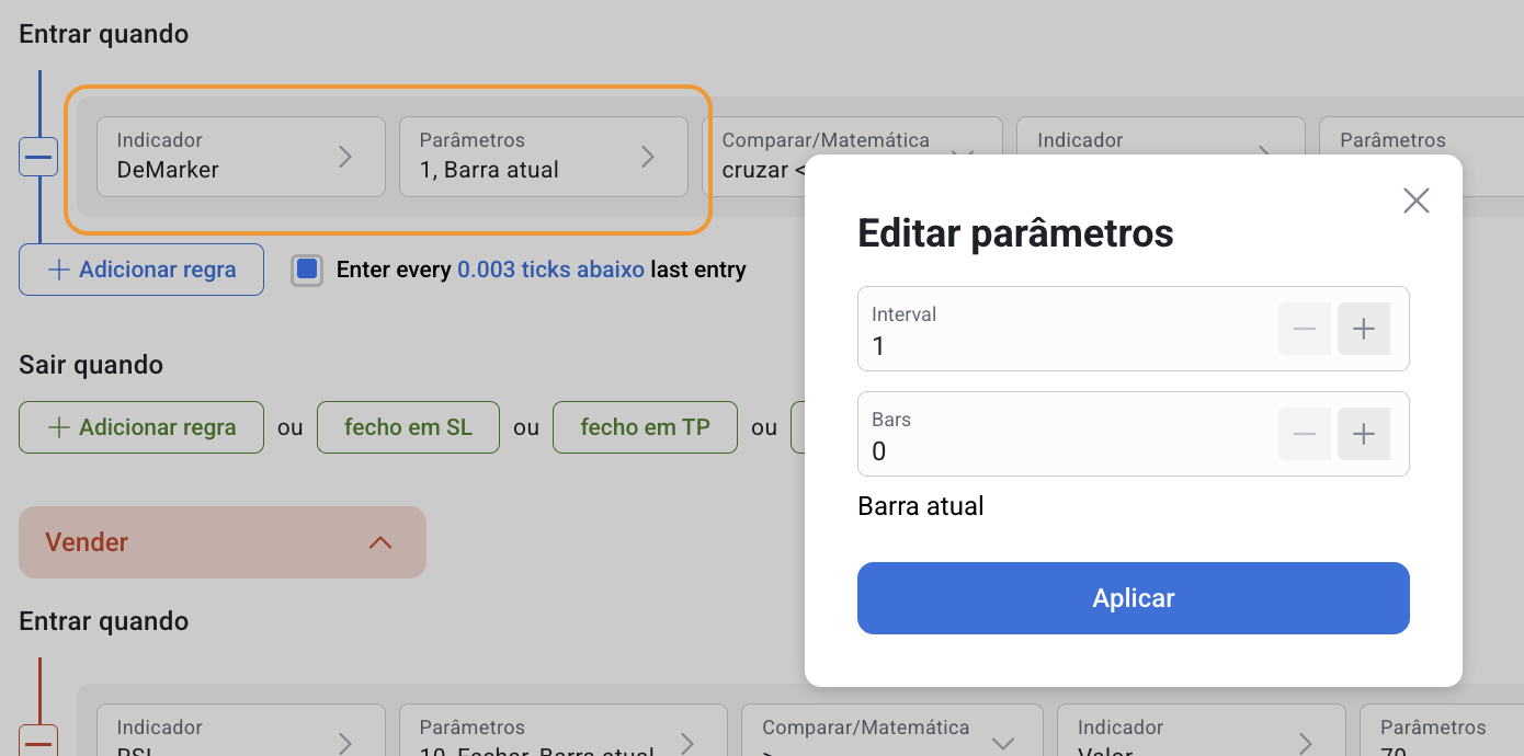 O DeMarker pode ser utilizado separadamente e em conjunto com outros indicadores no RoboBuilder.