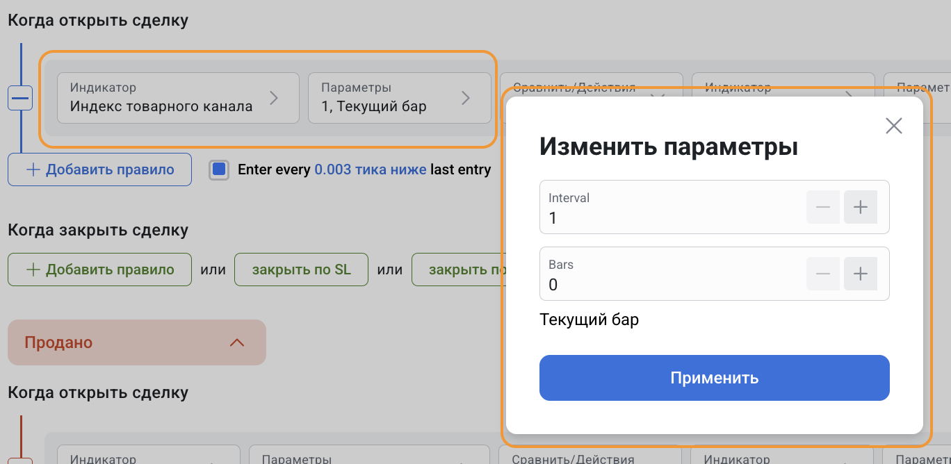 Commodity Channel Index - CCI (Индекс товарного канала) может использоваться как самостоятельно, так и вместе с другими индикаторами в конструкторе стратегий.