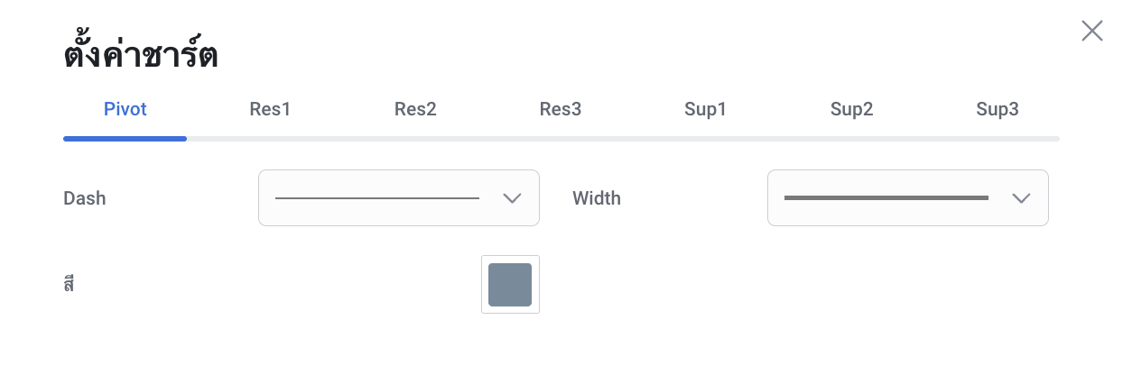 อินดิเคเตอร์มักประกอบด้วยระดับเพิ่มเติม: S1, S2, S3, R1, R2 และ R3 ซึ่งหมายถึงแนวรับ 1–3 และแนวต้าน 1–3